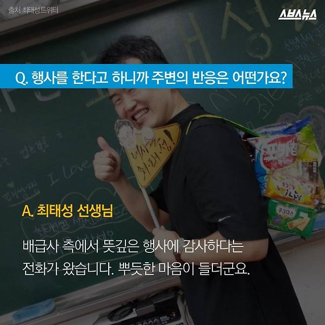 온라인 커뮤니티를 뜨겁게 달구고 있는 최 선생님을 스브스뉴스가 만나봤습니다.
