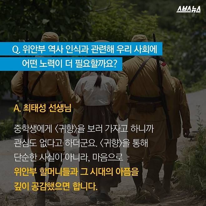 Q. 스브스 : "위안부 역사 인식과 관련해 우리 사회에 어떤 노력이 더 필요할까요?"