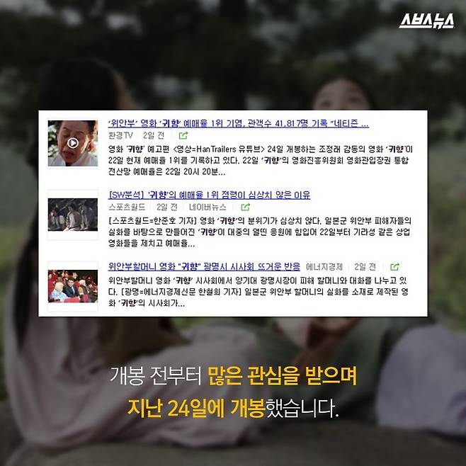 1943년, 일제강점기 위안부 피해자의 실화를 다룬 영화 <귀향>.