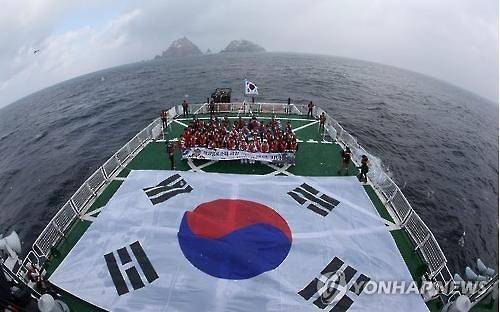 '해양영토 순례' 이틀째인 이날 일행은 독도경비대를 방문할 예정이었으나 높은 파도 탓에 상륙하지 못하고 약 1㎞ 떨어진 해상에서 독도를 바라보며 기념행사를 했다.