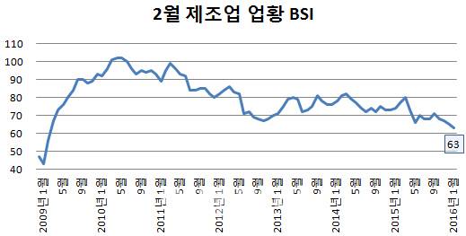 상황이 이렇다 보니 기업들의 경제심리는 살아날 줄 모른다. 한국은행에 따르면 2월 업황 기업경기실사지수(BSI)는 63으로 금융위기가 한창이던 2009년 3월 이후 최저 수준을 기록했다. 수출 제조업체의 업황 BSI는 내수 제조업체 대비 하락 폭이 컸다. 그만큼 체감경기가 더 추웠다는 의미다. 서비스업을 위주로 한 비제조업 또한 2월 업황 BSI가 2009년 3월 이후 최저치로 내렸다.