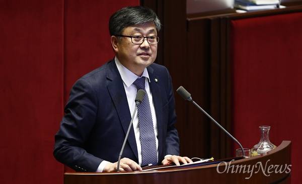 | ▲ 최원식 국민의당 의원이 지난달 29일 오전 국회에서 테러방지법 저지를 위한 무제한 토론(필리버스터)을 26번째로 이어가고 있다. |