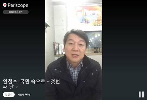 안 대표가 생중계에 활용한 도구는 페리스코프(Periscope)라는 동영상 SNS 앱이다. 이 앱은 트위터가 지난해 3월 인수한 것으로, 휴대전화로 촬영한 영상을 전세계에 생중계하고 공유할 수 있다.