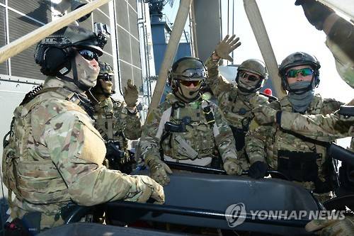 해군은 이날 "제주민군복합항 준공을 계기로 제주 남쪽 해역에서 해상기동훈련을 실시한다"고 밝혔다. UDT대원들이 훈련 준비하고 있다. 2016.3.2 << 해군 제공 >>