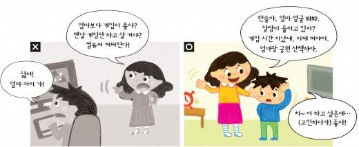 아이가 게임을 하거나 스마트폰을 가지고 놀 때는 반드시 시간을 정해야 한다. 게임이나 스마트폰은 중독성이 강해 아이의 기분을 상하게 하지 않으면서 그만두게 할 방법은 별로 없다. 아이가 기분 나빠하며 반항해도 쉽게 포기하고 물러나서는 안 된다. 단호하게 게임을 중단시키고 ‘게임은 더 못 하지만 엄마와 놀이는 할 수 있다’고 알려주어야 한다.