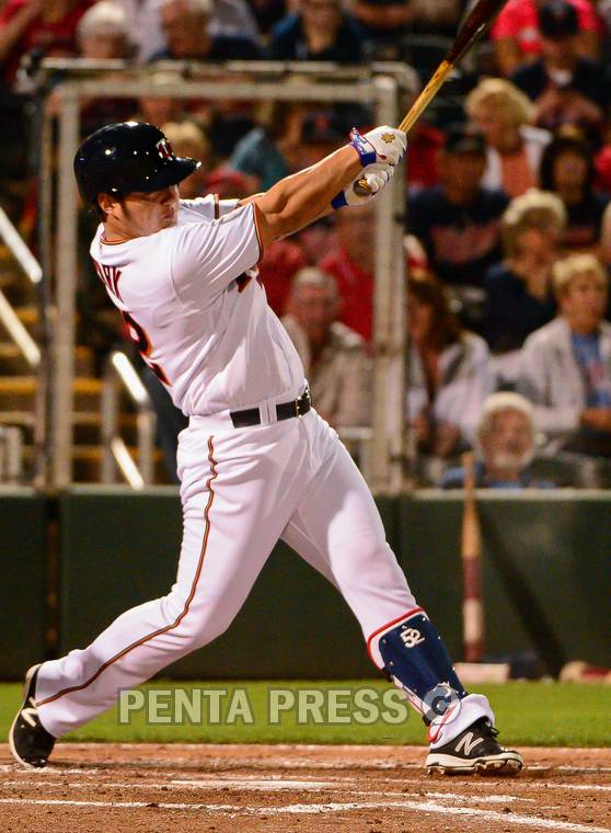 [포토] 박병호 미국진출 첫 안타 - MLB 시범경기 보스턴 VS 미네소타 (12)