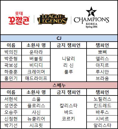 CJ가 4일, 용산 e스포츠 상설경기장에서 열리는 롯데 꼬깔콘 리그오브레전드(LoL) 챔피언스(이하 롤챔스) 코리아 스프링 2016 2라운드 3회차 경기에 출전해 스베누를 세트 스코어 2:1로 꺾었다.