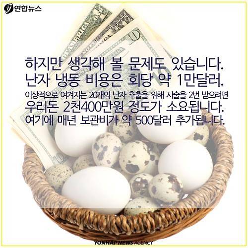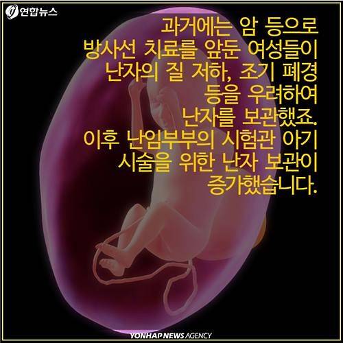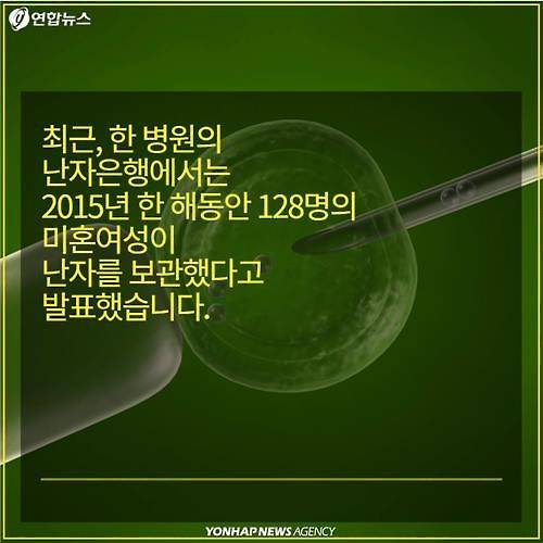 (서울=연합뉴스) 전승엽 기자·김지원 작가 = 최근 한 병원의 난자은행은 작년 한 해 동안 128명의 미혼여성이 난자를 보관했다고 발표했습니다. 이는 전년(56명) 대비 2배 이상, 2013년(30명) 대비 4배 이상 증가한 수치인데요. 과거에는 암 등으로 방사선 치료를 앞둔 여성들이 난자의 질 저하, 조기 폐경 등을 우려하여 난자를 보관했다면 요즘은 난임 부부의 시험관 아기 시술을 위한 난자 보관이 증가했습니다. 난자 보관 증가 추세, 여러분은 어떻게 생각하시나요?