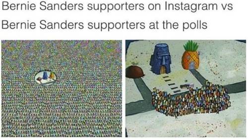 클린턴 힐러리 민주당 경선 후보도 비판의 화살을 피해가지 못했다. 인기 가수 마일리 사이러스는 3일(현지시간) 자신의 인스타그램에 ‘(2위 후보) 버니 샌더스의 인스타그램 지지자 vs 투표장 지지자들’이라는 풍자 섞인 만평을 내걸었다. 국민 지지 여론이 높은 샌더스가 불공평한 경선룰 때문에 불이익을 받고 있다는 내용이었다.