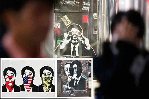 일본에는 아베 신조 정부의 우경화 및 원전 재가동 정책을 비판하는 그래피티 작품으로 ‘일본의 뱅크시’로 불리는 ‘281_anti nuke’가 대표적이다. 한국의 풍자작가로는 2014년 광주비엔날레 20주년 특별전 출품작 ‘세월오월’의 홍성담 화백과 풍자화 연작 ‘문신시리즈’를 낸 이홍원 화백 등이 꼽힌다.