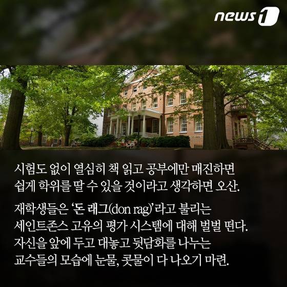 (서울=뉴스1) 이준규 기자,이은주 디자이너 = 청년 취업이 하늘의 별 따기인 시대입니다. 이런 상황 속에 미국의 한 대학은 재학생 모두에게 4년 내내 인문학 고전 100권을 읽고 토론하게 하고 있습니다. 남들보다 더 좋은 스펙을 쌓기에 분주한 젊은이들에게 고전 읽기라니. 그런데 뉴욕타임스(NYT)는 이 곳을 '미국 최고의 학사 과정' 대학으로 선정했습니다. 세인트존스만의 매력이 무엇인지 알려드립니다.