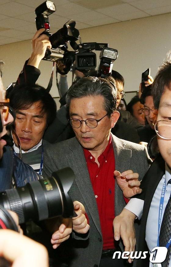 (서울=뉴스1) 박지혜 기자 = 이한구 새누리당 공천관리위원장이 7일 오전 서울 여의도 국회 새누리당 최고위원회의에 참석해 김무성 대표를 만난 뒤 당사로 향하고 있다. 2016.3.7/뉴스1