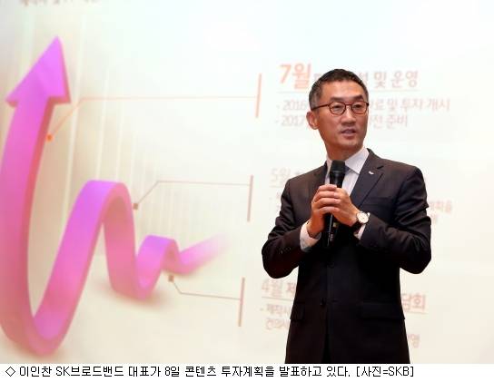 이를 토대로 드라마, 영화, 애니메이션 등 자체 콘텐츠 제작에 투자하고 콘텐츠 부문 스타트업 업체들에 1천억원을 지원할 계획이다. SK브로드밴드는 펀드운용 수익과 회수자금 등 1천800억원을 보태 5년 동안 5천억원을 콘텐츠 분야에 투자한다는 입장이다.