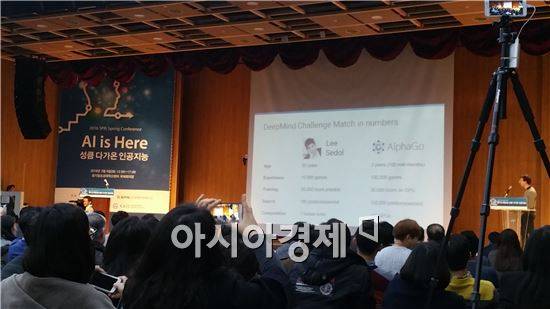 8일 경기도 성남시 분당구 경기창조경제혁신센터 국제회의장에서 '성큼 다가온 인공지능'을 주제로 컨퍼런스가 열렸다. 이날 데이비드 실버 구글 딥마인드 리서치 사이언티스트는 알파고의 바둑 학습 방식에 대해 강연했다.