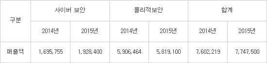 한국정보보호산업협회(KISIA·회장 홍기융) 실태조사 결과 2015년도 사이버보안 매출은 1조 9284억원에 달했다. 지속 성장하던 물리보안 분야는 5조 8191억원으로 5.4% 증가에 그쳤다.