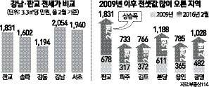 판교신도시의 3.3㎡당 전세 가격은 서울 강남4구를 위협하는 수준에 다다랐다.