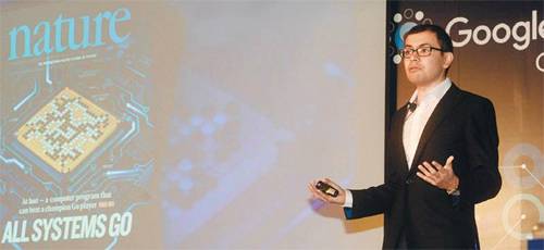 인공지능 컴퓨터 프로그램 ‘알파고’를 개발한 구글 딥마인드의 최고경영자 데미스 하사비스가 8일 서울 종로구 포시즌스호텔에서 알파고의 프로 바둑기사 상대 승리를 발표한 네이처 논문에 대해 설명하고 있다. 이제원 기자