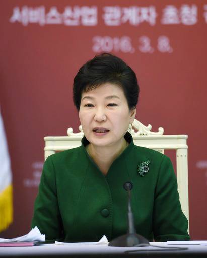 | 박근혜 대통령이 8일 청와대에서 열린 '서비스산업 관계자 간담회'에서 모두 발언을 하기에 앞서 참석자들을 바라보고 있다. 청와대사진기자단 |