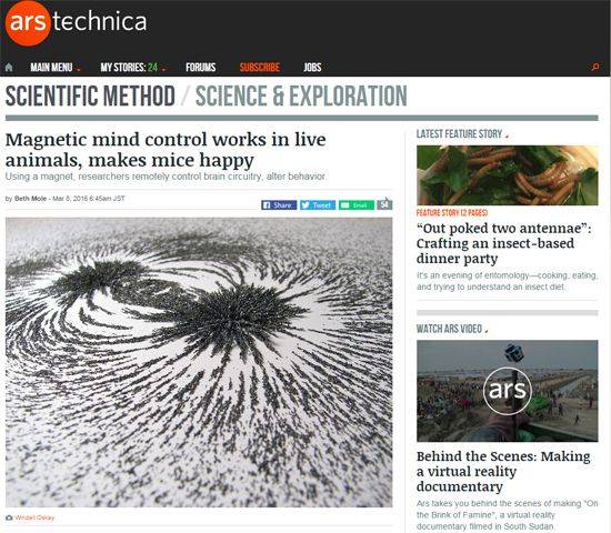 논문 저자인 알리 귈레르 버지니아 대학 생물학자는 “우리가 알기로는 이번 실험 결과가 자기를 사용해 신경계를 컨트롤 할 수 있는 최초의 실증 실험이다”고 말했다.