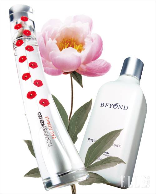 화이트 피오니와 불가리언 로즈, 만다린이 차례로 전해져 꽃나무 아래의 벤치에서 시원한 바람을 맞고 있는 기분이다. 오 플로럴 오 드 뚜왈렛, 9만7천원, Kenzo.