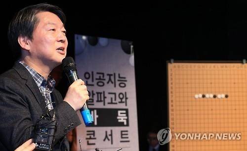 안 대표는 이날 서울 대학로의 소극장 '아름다운 극장'에서 대국을 관전했다. 안 의원은 이 지역 현역 의원인 더민주 정세균 의원과 조우해 대화하면서 자신을 "20년 전 아마 2단"이라고 소개했다.