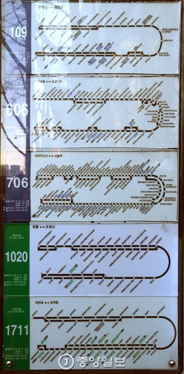 파주시 운정신도시, 고양시 일산신도시·화정동·원당·삼송동, 구파발을 지나 서울역을 돌아오는 긴 거리야. 버스정류장만 152개, 운행거리가 95km에 달해.