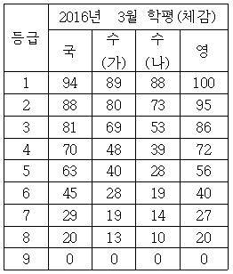 특히, 학기 초 시험이기 때문에 1~2학년 과정 범위에서만 출제되었고, 자연계 수험생에게 중요한 과탐 2과목이 출제되지 않았다는 점을 염두에 두어야 한다.
