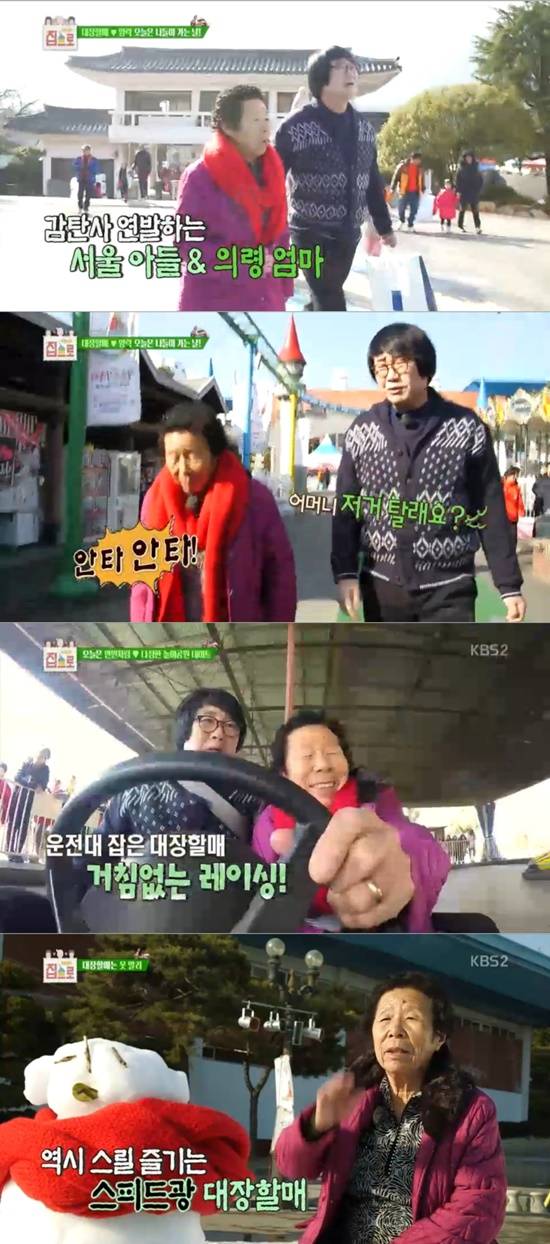 이날 최양락은 대장할매와 함께 유원지로 향했다. 겁이 많은 대장 할매를 위해 최양락이 선택한 놀이기구는 '범퍼카'였다. 연신 웃음을 참지 못하고 즐겁게 운전대를 잡은 대장할매는 "한 1분 탔나 싶다. 재밌다 그거"라며 만족스러워했다.