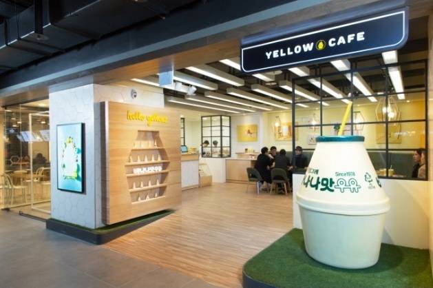 빙그레는 ‘바나나맛 우유’를 주 테마로 내세운 ‘옐로우카페’를 현대시티아울렛 지하 2층에 선보인다. 이곳에서는 ‘바나나맛 우유’를 주 재료로 만든 라떼 메뉴와 스무디, 소프트 아이스크림 등이 판매된다. 푸딩이나 커스터드빵 등 베이커리 메뉴도 갖췄고, ‘바나나맛 우유’를 소재로 한 이색 상품들도 판매될 예정이다.