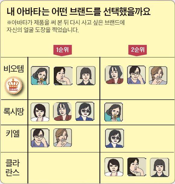 미소=네 제품 중 용기는 비오템이 가장 마음에 들었어. 노란색도 좋고 손에 착 감기는 디자인에 튜브식이라 양 조절도 편하고.