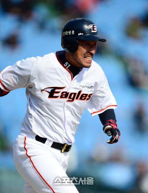한화 김경언이 6회말 1사 1루 내야땅볼을 친 후 1루로 달려나가고 있다. 상대 1루수 실책으로 출