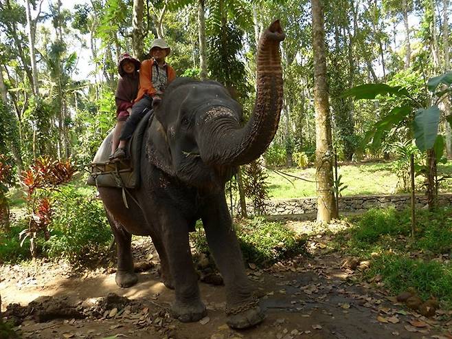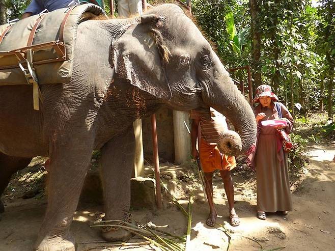 이 동네 코끼리학교 관계자들은 태국 치앙마이나 네팔 치트완에 유학가서 코끼리트래킹이 어떤건지를 배우고 와야한다. 네팔 치트완국립공원 코끼리트래킹은 그야말로 환상이다. 수많은 동물을 자연속에서 만나고 코끼리등 의자는 안락의자라서 3시간을 타는데도 불편하지 않다. 이곳 떼카티코끼리 등에 15분 정도 앉아있는데 안장이 오른쪽으로 미끌어져 계속 불편했다.