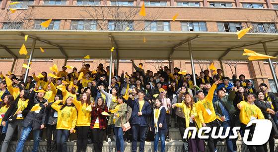 (안산=뉴스1) 구윤성 기자 = 27일 오후 경기도 안산시 단원고등학교에서 '416대학생 새로배움터'에 참가한 대학생들이 종이비행기를 날리고 있다. 행사에 참가한 대학생들은 세월호 참사로 희생된 단원고 학생들과 같은 나이인 대학 신입생들로, 단원고 생존자와 유가족들과 함께 교실을 둘러보는 등 연대의 시간을 가졌다. 2016.3.27/뉴스1