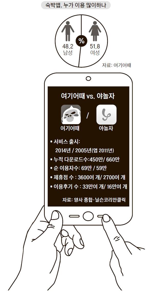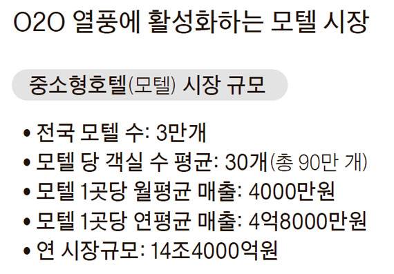 모텔의 변화는 오프라인(모텔)과 온라인(애플리케이션)을 잇는 숙박 예약·검색 O2O(Online to Offline) 서비스가 순풍을 탄 게 계기가 됐다. ‘부적절한 만남’의 온상지로 여겨졌던 모텔은 2000년대 중반부터 변하기 시작했다. 2005년 설립된 ‘야놀자’는 모텔 정보를 한데 묶어 제공했고, 저렴하고 깨끗한 숙박 시설에 갈증을 느끼던 소비자들의 호응을 얻으며 급성장했다. 이어 2014년 숙박 앱 ‘여기어때’가 나오면서 숙박 O2O 시장의 양강 체제가 구축됐다.