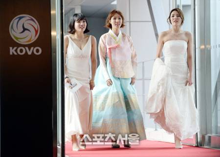 이날 순백의 드레스를 입은 강소휘는 배구 유니폼으로 가려져 있던