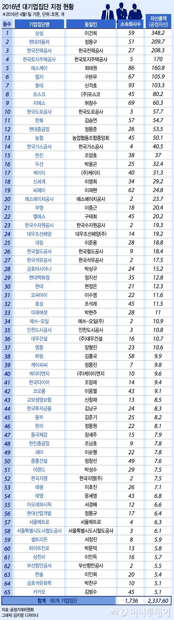 [표]2016년 자산기준 재계 순위..2위 현대차, 1위는?