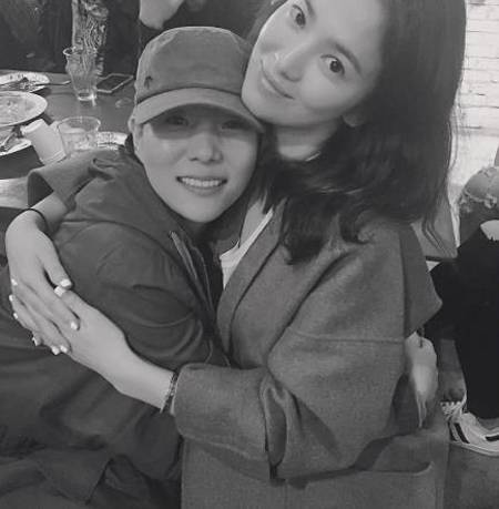이날 송혜교가 공개한 사진 속에는 그와 서정연이 다정하게 껴안고 카메라를 향해 미소 짓고 있는 모습이 담겨있다.