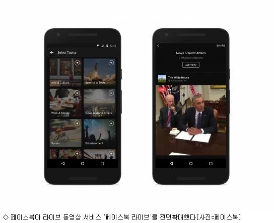 더버지 등의 주요외신들은 페이스북이 스마트폰 카메라로 촬영해 누구나 라이브 동영상을 올리고 댓글을 남길 수 있도록 페이스북 라이브 서비스를 전면 확대했다고 6일(현지시간) 보도했다.