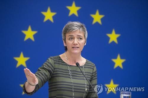 epa05250098 European Commissioner for Competition Margrethe Vestager responds to a question from a member of the news media, during a news at the Delegation of the European Union to the United States in Washington, DC, USA, 08 April 2016. Vestager finishes a visit to Washington in which she attended the American Bar Association's Antitrust Law Spring Meeting and met with US lawmakers and members of the Obama administration. EPA/MICHAEL REYNOLDS