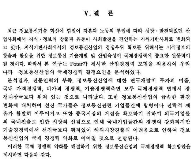 전희경 논문: 앞으로 정보통신산업이 지금과 같은 발전을 지속하기 위해서는 [공급자의 위치에 있는 정보통신산업과 이를 수요함으로서 달성되는 정보화가] 계속 유기적으로 연계되어 성장하여야 한다.