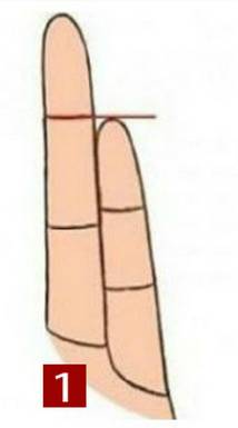 1. 새끼손가락 높이가 약지 첫 번째 마디선과 같다면