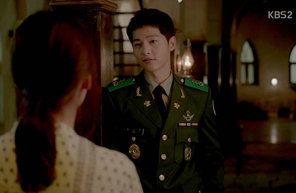 우르크 갱단 두목인 아구스(데이비드 맥기니스)는 유시진에게 “캡틴”이라 호칭한다. 유시진의 계급인 대위의 영어 명칭 자체가 캡틴이기 때문이다. 대위 위로 소령부터 대장까지 수많은 계급이 존재하지만, 캡틴이라는 단어에 선장이나 주장 등의 의미도 포함되어 있기 때문에 대위는 단순한 중간 계급이 아닌 좀 더 직관적인 리더, 대장의 느낌이 있다. 가장 대표적인 것이 미국의 영웅 캡틴 아메리카 스티브 로저스로, 그는 2차 세계대전 당시 대위 신분으로 하울링 코만도를 이끌었고 70호봉을 넘긴 지금까지도 여전히 장군 대신 캡틴의 위치를 고수하고 있다. 유시진 역시 대위, 혹은 캡틴이란 명칭에 대해 강한 집착을 보이는데, 그의 직속상관의 대사를 인용하면 “사고만 아니면 별이란 별은 다 달 놈”이지만, 결국 명령 불복종으로 소령 진급 심사에서 누락된다. 아, 캡틴이여 영원하여라.