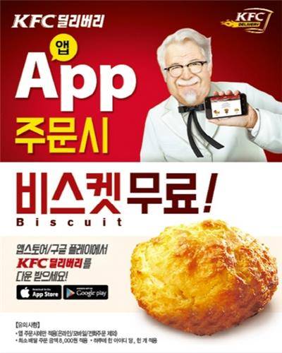 KFC, 딜리버리 앱 주문 시 비스켓 무료 증정