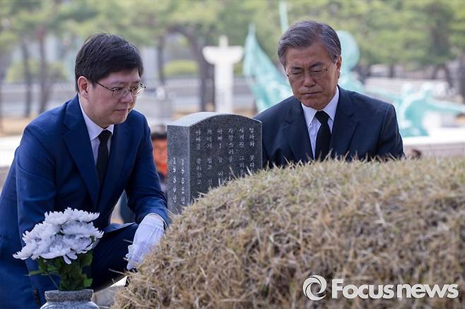 | ▲ 문재인 더불어민주당 전 대표와 김홍걸 국민통합위원장이 8일 오전 전남 광주 5.18 민주묘지를 찾아 민주열사 묘지를 둘러 보고 있다. ⓒ포커스뉴스 |