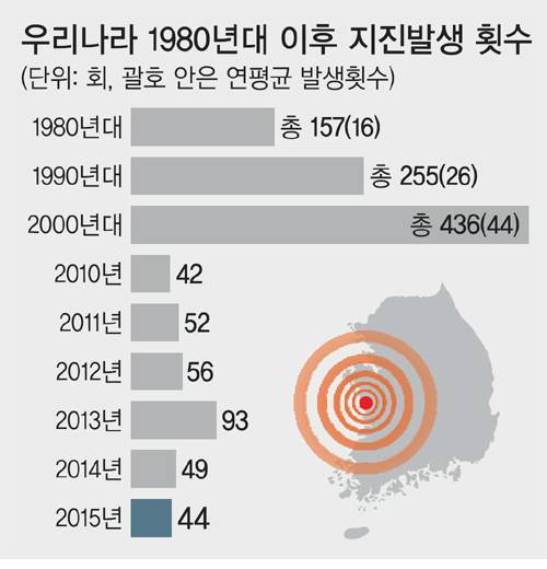 최근 일본 구마모토와 남미 에콰도르에서 연이어 규모 7.0이 넘는 강진이 발생하면서 한반도에도 지진 불안감이 엄습하고 있다. 한반도가 여전히 지진안전지대로 분류되지만 이번 구마모토 지진이 부산과 대구에서도 감지된 것을 보면 내진설계 등 지진에 철저히 대비해야 한다. 따라서 전문가들은 기존에 법적용을 받지 않았던 건축물의 내진보강에 속도를 내야 한다고 지적하고 있다.