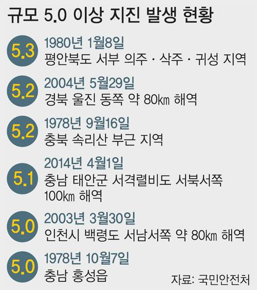 지헌철 한국지질자원 지진화산센터장은 “강진이 발생하기 위해서는 긴 단층과 응력(축적된 에너지)이라는 두 가지 조건이 필요한데 한반도는 이 조건에 맞지 않는다”며 강진 발생 가능성에 선을 그으며 “내진설계를 과도하게 높여 비용을 낭비하는 것보다는 붕괴 시 추가 피해가 큰 공공건출물에 대한 내진보강 강화를 서두르는 게 중요하다”고 지적했다.