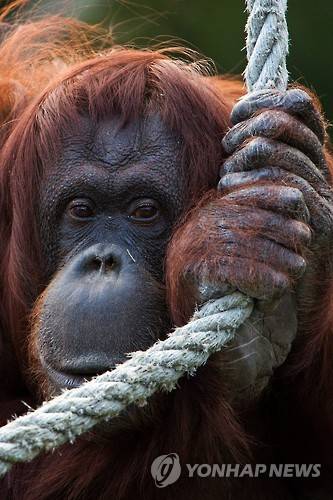 epa05267139 Nonja the thirty-nine-year-old female orangutan is seen at the 'Tiergarten Schoenbrunn' zoo in Vienna, Austria, 19 April 2016. Nonja was hand-raised and will celebrate her 40th birthday on 21 April 2016. EPA/CHRISTIAN BRUNA