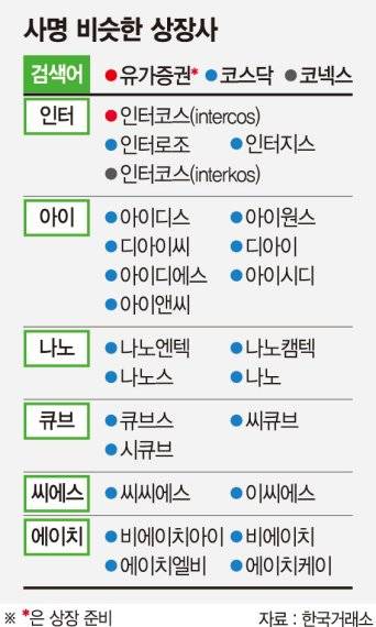 예비 유가증권시장 상장업체와 코넥스시장에 신규상장된 업체 이름이 같아 투자자들이 혼란을 불러일으킬 수 있어 주의가 요구된다.