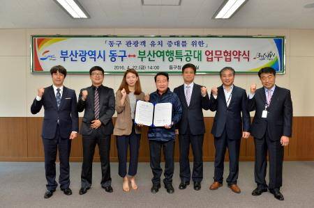 동구(구청장 박삼석)는 22일 동구청 회의실에서 관광객 유치 증대를 위해 (주)부산여행특공대와 업무협약을 체결했다.