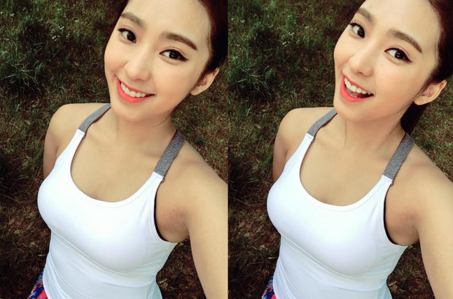 사진 속 보라는 몸매가 드러나 보이는 흰색 민소매 운동복을 입고 환한 미소를 짓고 있다. 건강미 넘치는 몸매가 팬들의 시선을 사로잡는다.